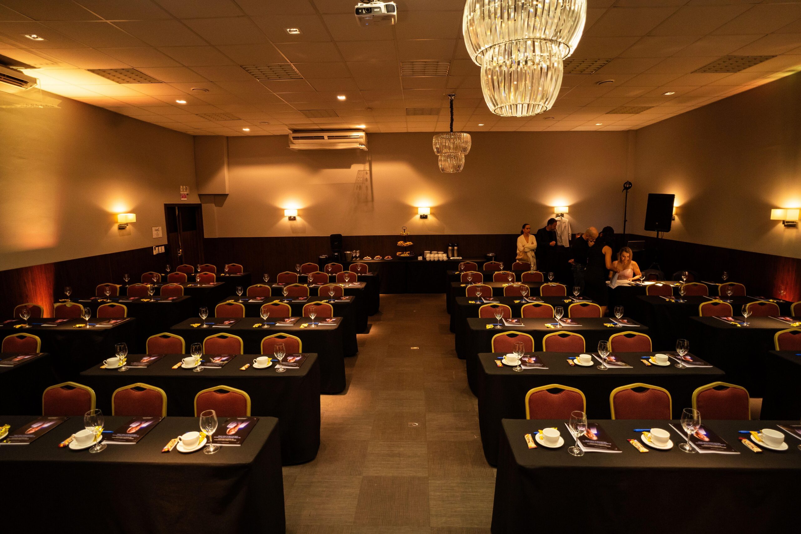 em formato auditório, além de foyer na entrada, ideal para recepção, ativações de marca, networking e coffee break.
